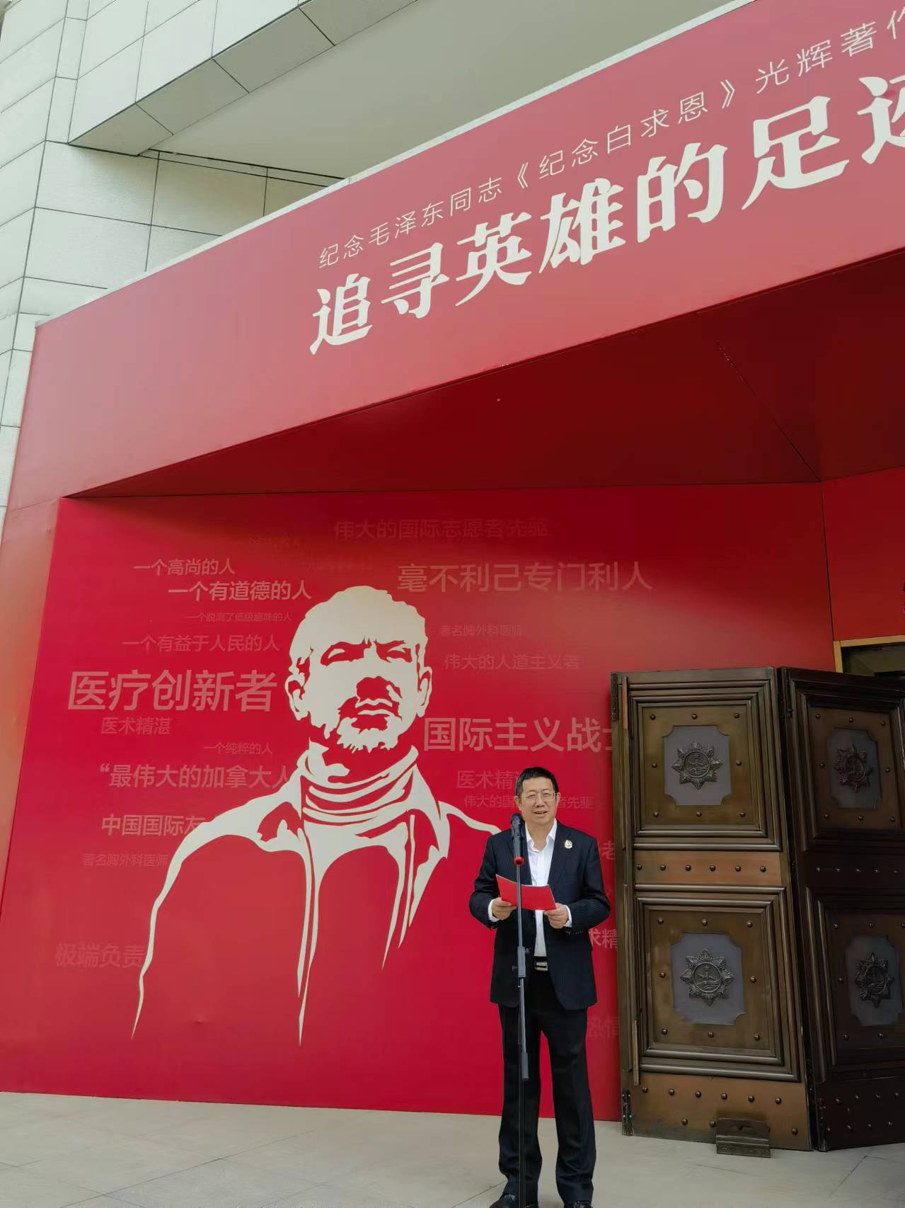 白求恩精神研究会副会长穆广态、中国人民抗日战争纪念馆党委书记、馆长罗存康为展览揭幕并致辞。