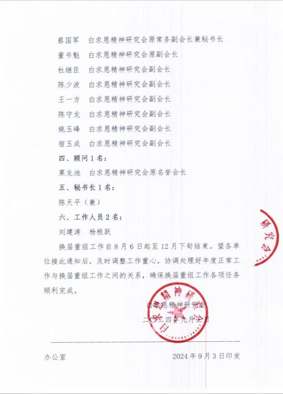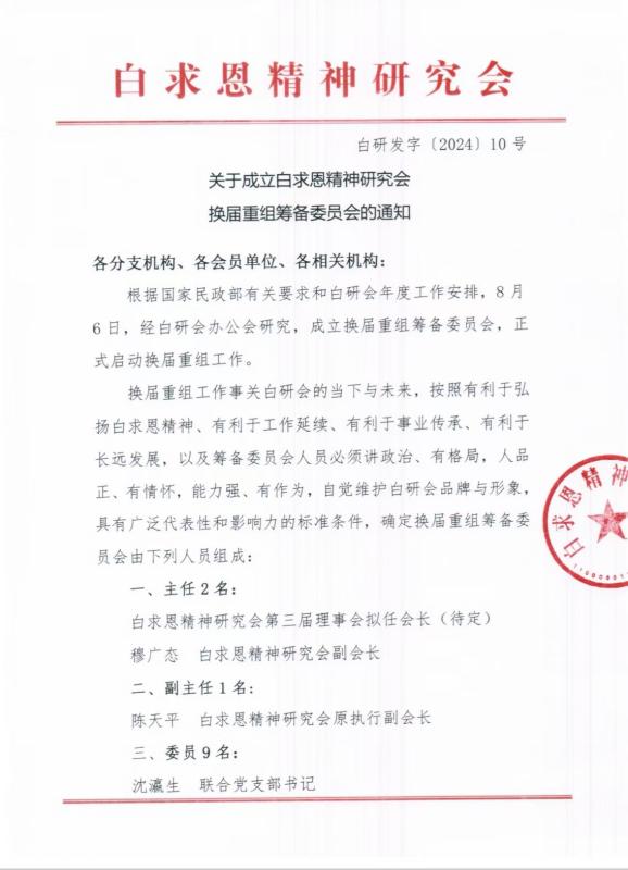关于成立白求恩精神研究会换届重组筹备委员会的通知